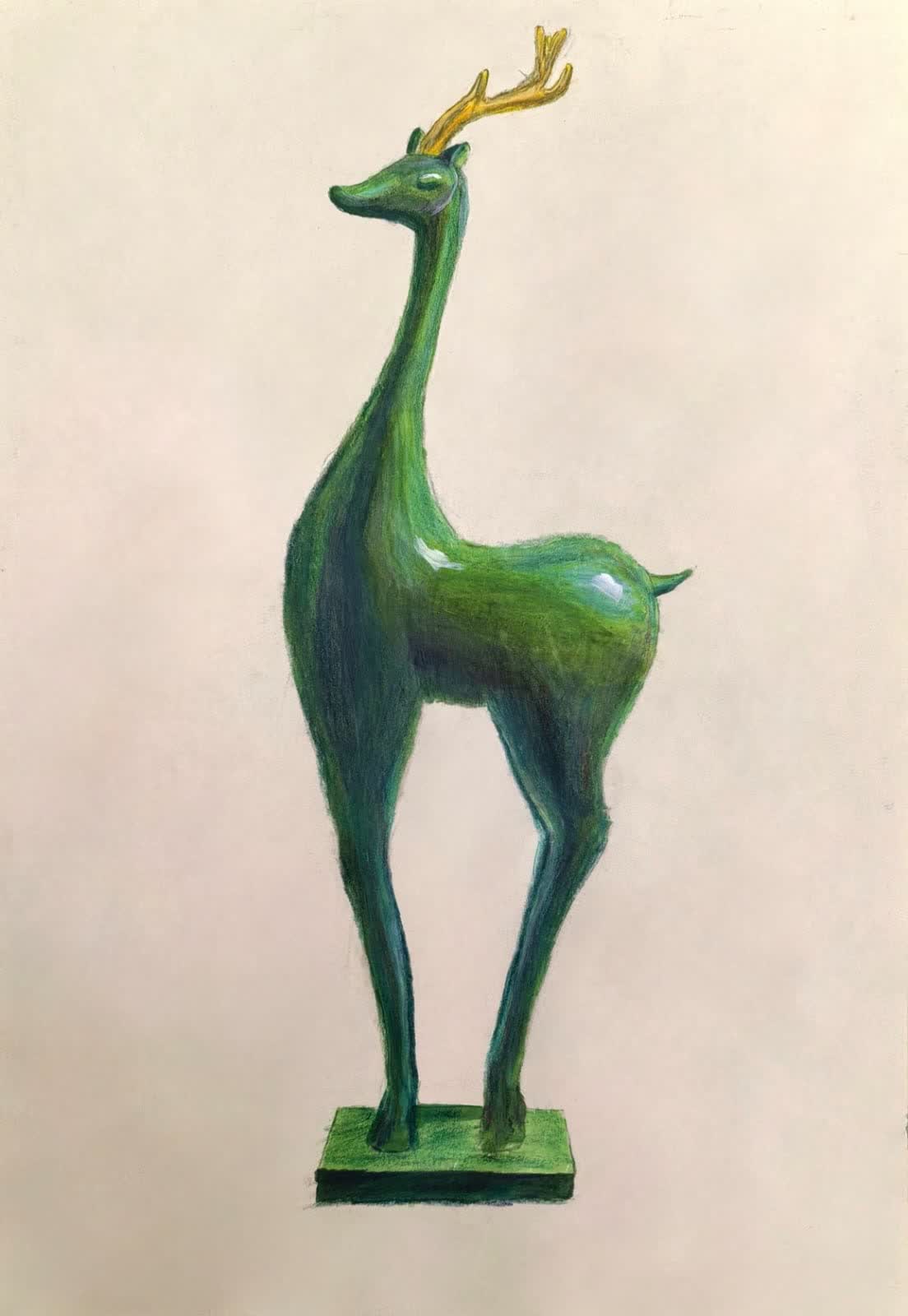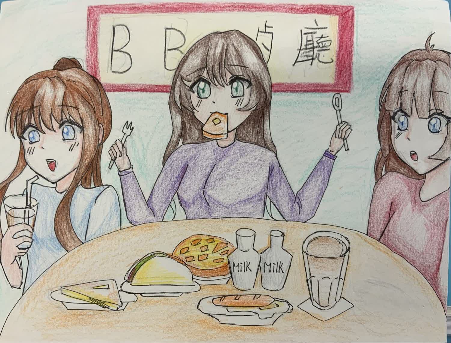 是次獲獎作品題材多元,既有描繪本土生活氣息的《BB餐廳》,亦有呈現傳統文物美感的《青銅鹿》,反映學生對生活與文化的細膩觀察。其中,《BB餐廳》以彩鉛手繪刻畫三位少女於茶餐廳歡聚的場景,透過日系動漫風格筆觸,融合港式飲食文化與青春友誼,色彩溫暖,人物生動。《青銅鹿》則以擬雕塑手法,透過深淺綠色層疊,模擬青銅器的氧化質感,搭配簡約線條與靜謐背景,展現古今交融的審美意境。