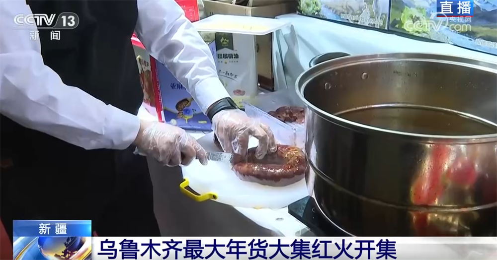 既然是新疆的年货大集,自然少不了当地的特色产品。大家看这一排展示的都是新疆各族百姓春节前最爱采购的年货,这是熏马肉,当地也叫作马肠子,热腾腾的马肉煮好后是新疆春节餐桌上妥妥的“硬菜”;此外,还有各类奶制品和其他牛羊肉制品。这两天采访中记者了解到,很多在新疆工作的外地朋友都会在春节返乡前选购一些新疆特色年货带回老家。怎么样?这样的回家礼物是不是很特别?