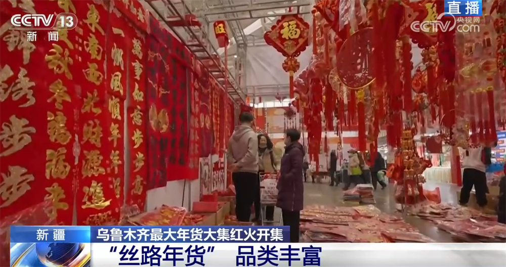 当然,乌鲁木齐这个年货大集里,红灯笼、春联、非遗集市等承载中华传统节庆氛围的元素也必不可少。这两天,从每一位进入大集采购年货的人们脸上,我们都看到了对春节团圆的满满期待。