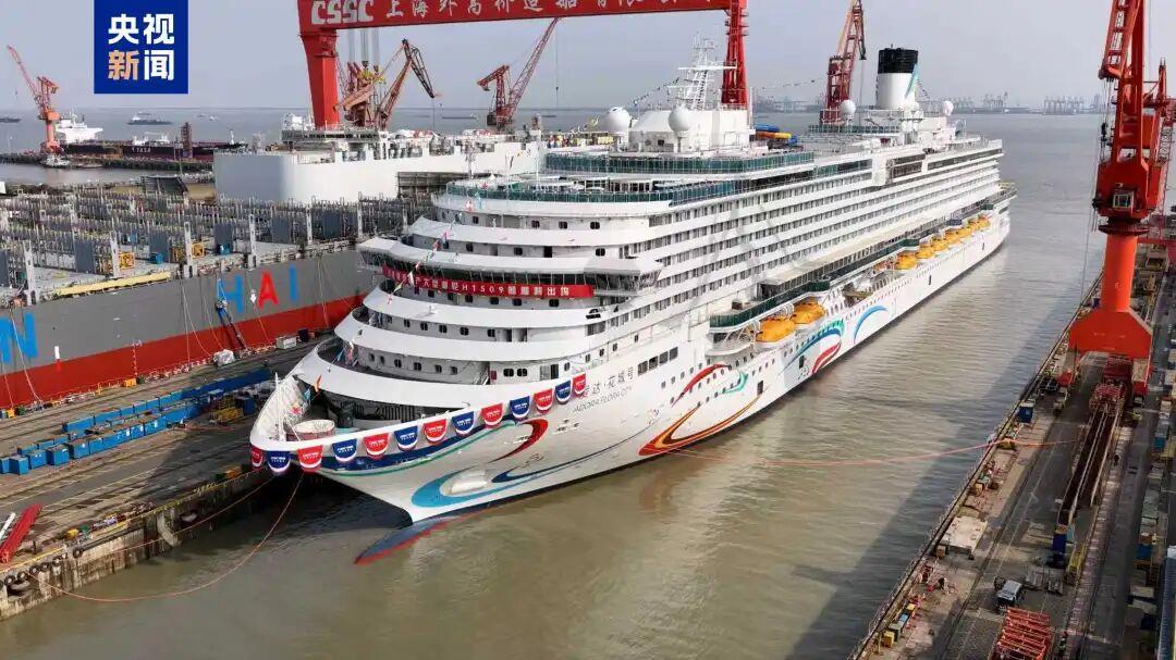 近日,第二艘国产大型邮轮“爱达·花城号”在上海出坞,其整体建造进度超94%,将在5月底开展试航。
