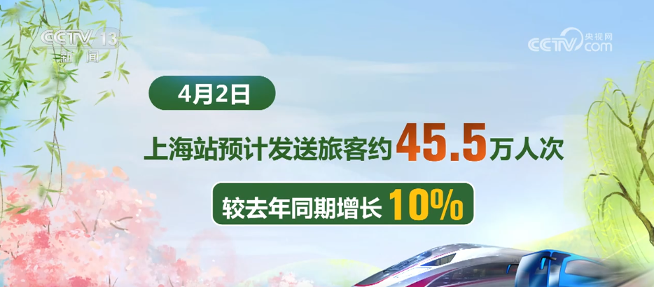 4月2日,铁路上海站预计发送旅客约45.5万人次,较去年同期增长10%。为满足旅客出行需求,铁路上海站近期在已增开列车基础上,再安排加开安徽、江苏、浙江等方向旅客列车62.5对。4月3日至7日,铁路上海站预计发送旅客256万人次,同比增长6.18%。其中,4月4日为客流最高峰,预计发送旅客将超70万人次。