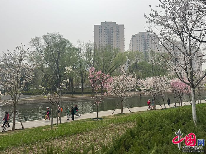 记者了解到,北小河及沿岸、北小河公园、大望京公园、望和公园共栽植樱花近6000株、海棠超2200株,形成“樱花水岸”与“海棠花溪”两大主题景观带,粉白的樱花与娇艳的海棠交相辉映、灿若云霞,让市民在家门口就能尽享春日花海。4.2公里长的北小河,也因此被盛赞为当地居民的幸福河和后花园。