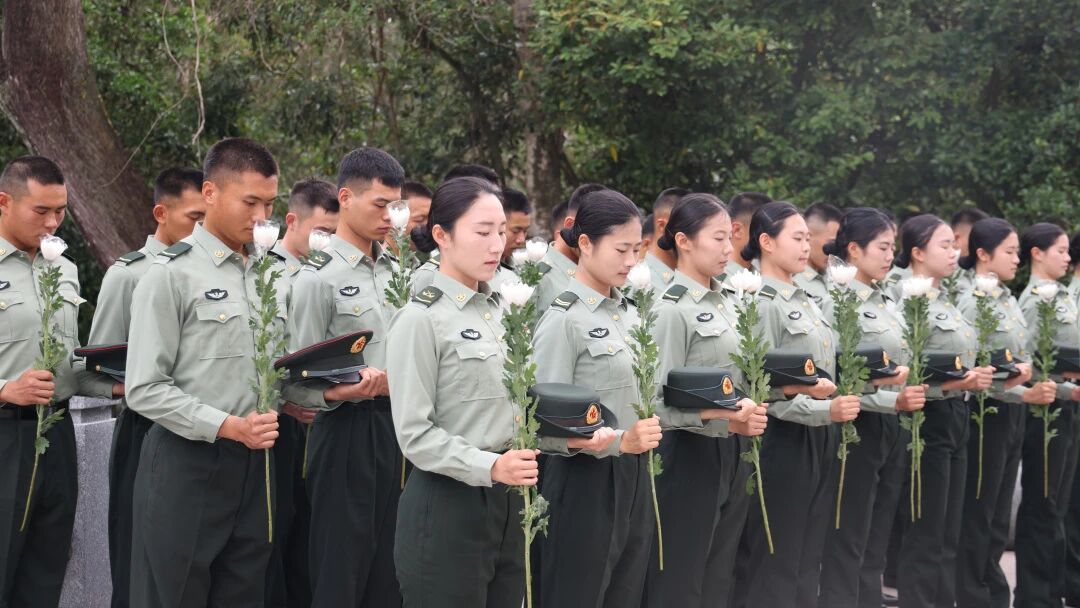 大家仔細清掃紀念園區、擦拭紀念碑,向革命先烈敬獻花籃、默哀致敬,瞻仰烏蛟騰抗日英烈紀念碑、斬竹灣抗日英烈紀念碑和劉春祥抗日英雄群體紀念碑,感悟先烈們的愛國情懷與民族氣節,汲取投身強國強軍事業的奮進動力。