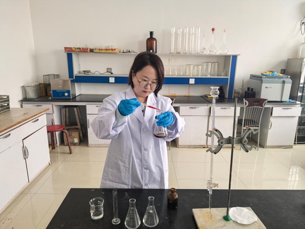 内蒙古兴安农垦集团有限责任公司测土配方办公室技术人员正在进行化验。(王萍 摄)