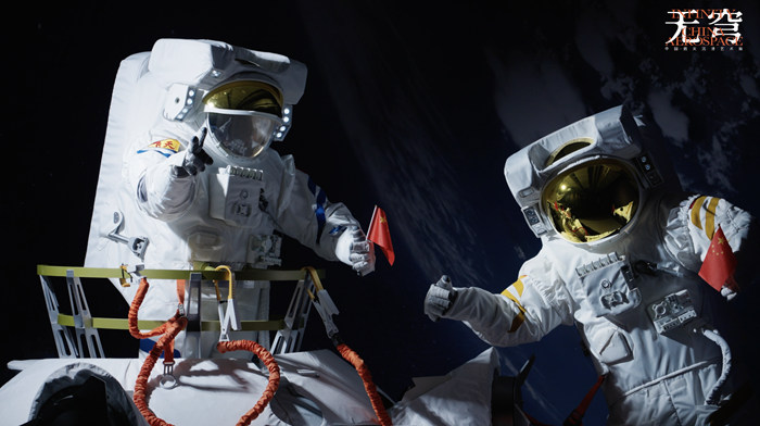 在《无穹》空间中,中国航天的视效团队,以珍贵航天影像为素材,融合中国人民五千年天际探索的神话传说,打造出一个540°沉浸投影空间,带观众穿梭千年,领略从神话到现实的巨变。