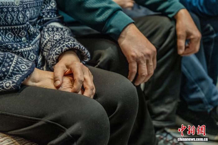 11月14日,在航天员陈冬父母位于河南洛阳的家中,他们与部分亲友一同守候在电视机前,观看神舟二十号航天员乘组返回的直播画面。据中国载人航天工程办公室消息,神舟二十号航天员乘组于11月14日,乘坐神舟二十一号飞船返回东风着陆场。图为陈冬父母紧张的双手。中新社记者 李超庆 摄