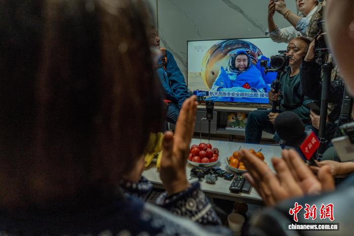 图为陈冬父母及亲友等鼓掌欢迎航天员陈冬顺利出舱。中新社记者 李超庆 摄