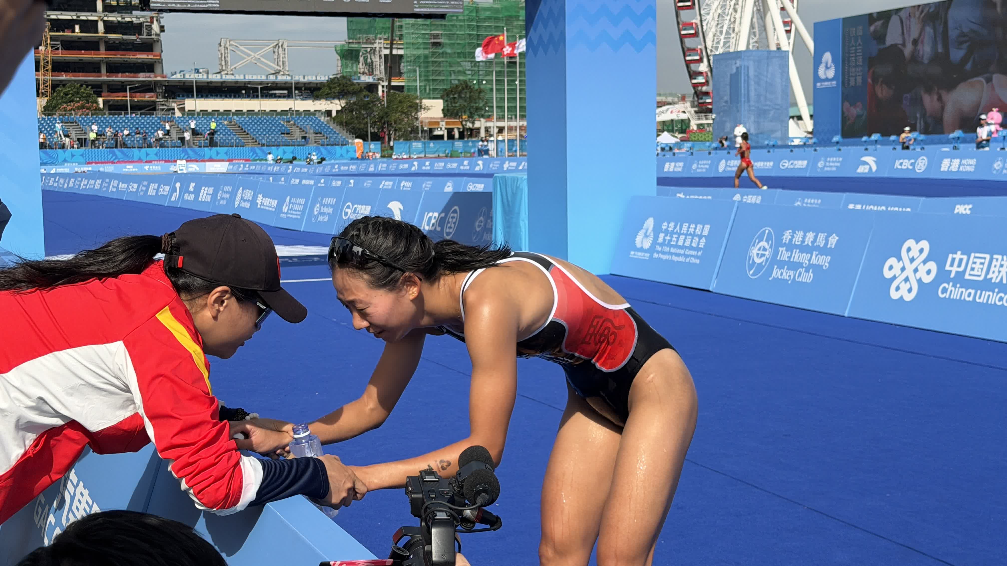 在率先上演的女子個人項目中,公安協會的黃安琪以1小時59分鐘16秒的絕對實力摘得金牌。港隊派出韋祺、彭詩雅、蔡欣研出戰,其中,韋祺以2小時01分4秒獲得第4名的好成績,她表示原本不擅長的游泳項目表現出色,有信心明日混合接力賽摘牌。