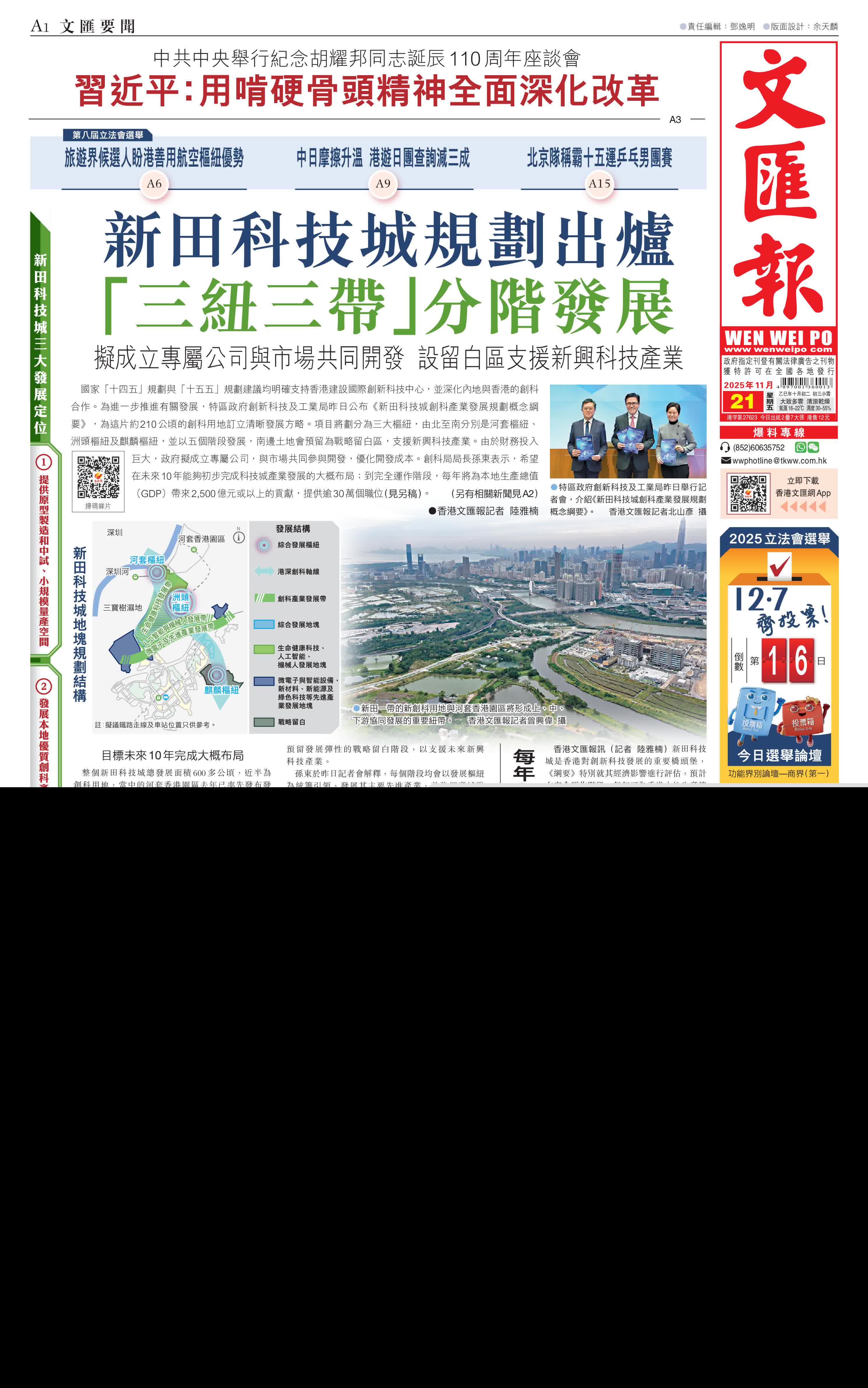 (香港文匯報記者 陸雅楠)國家「十四五」規劃與「十五五」規劃建議均明確支持香港建設國際創新科技中心,並深化內地與香港的創科合作。為進一步推進有關發展,特區政府創新科技及工業局昨日公布《新田科技城創科產業發展規劃概念綱要》,為這片約210公頃的創科用地訂立清晰發展方略。項目將劃分為三大樞紐,由北至南分別是河套樞紐、洲頭樞紐及麒麟樞紐,並以五個階段發展,南邊土地會預留為戰略留白區,支援新興科技產業。由於財務投入巨大,政府擬成立專屬公司,與市場共同參與開發,優化開發成本。創科局局長孫東表示,希望在未來10年能夠初步完成科技城產業發展的大概布局;到完全運作階段,每年將為本地生產總值(GDP)帶來2,500億元或以上的貢獻,提供逾30萬個職位。