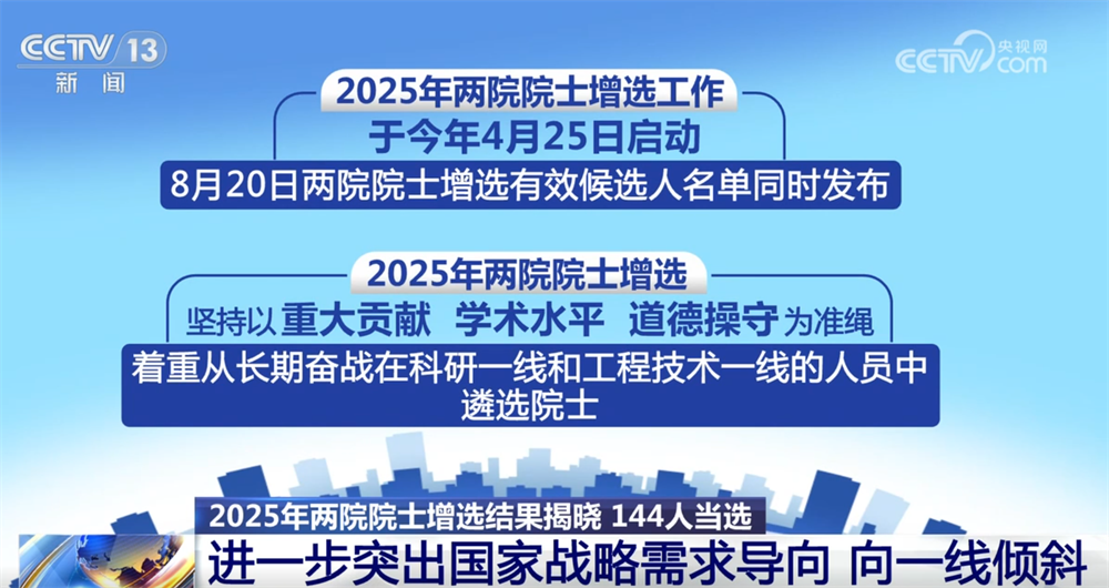 2025年两院院士增选结果揭晓 144人当选:进一步突出国家战略需求导向 向一线倾斜