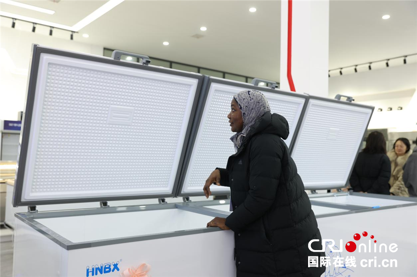 而在展厅另一侧,豪萨语主播法伊莎对长3.6米、容积2388升的商用冷链冰柜表现出浓厚兴趣。“这款产品已经出口到我的祖国尼日利亚。尼日利亚位于热带,对冷链储存需求很大。”她表示,“这么大的容量可以存放上千公斤的肉类,对我们国家的食品储藏和运输意义重大。”