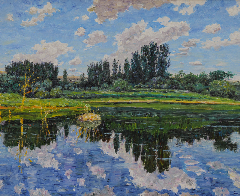 孙为民 西柏坡的八月 60×80cm 布面油彩 2021(国家大剧院供图)
