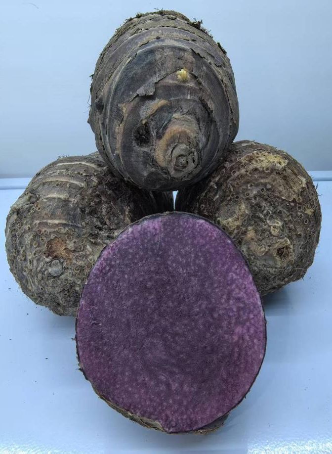 为适配规模化种植与深加工产业发展需求,团队进一步细分品种功能,培育的淀粉加工型新品种“泰芋3号”,经检测其总淀粉含量超40%,为芋粉、芋泥等深加工产品提供高性价比原料;抗病品种“泰芋4号”则展现出优异的抗逆性,不仅高抗芋疫病,还具备强抗高温、耐干旱能力,大幅降低田间管理难度与种植风险。团队还选育出“泰芋5号”新品系,该品系在营养层面实现了新突破,其球茎中富含花青素、芦丁等黄酮类营养物质,营养价值显著优于普通芋头品种,为消费者提供更高品质的健康食材选择。