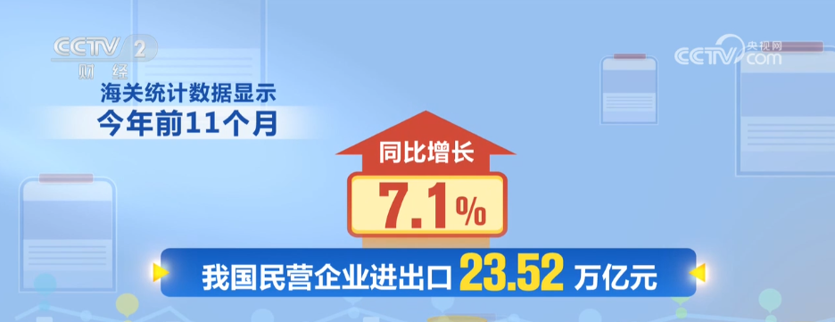 海关总署:今年前11个月民营企业进出口同比增长7.1%