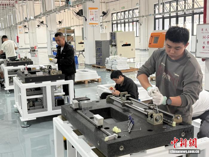 园区内的制造企业技术人员对设备进行调试和校准。记者 蔡敏婕 摄