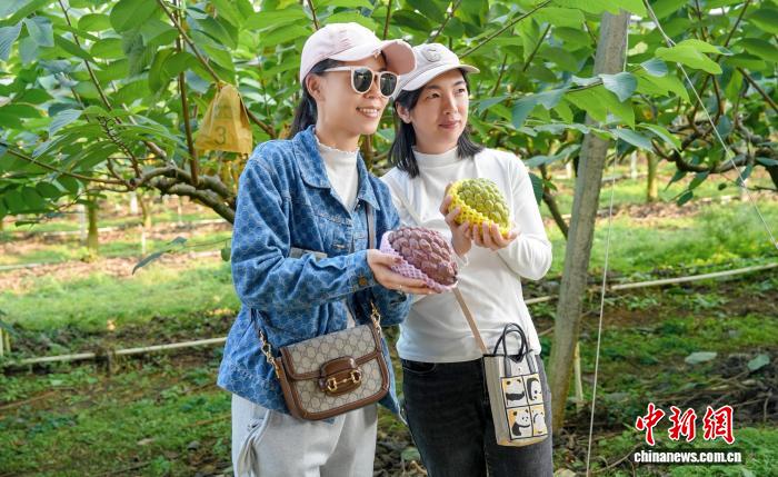 图为采购商在广西南宁释迦果园留影。广西壮族自治区水果技术指导站供图