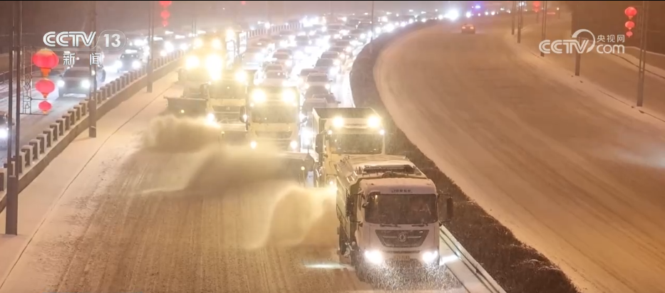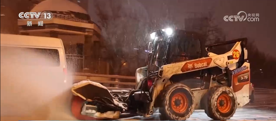 当地环卫部门出动车队,以7辆大型清雪车为一组,采用梯队行进的方式清理积雪。在机械设备难以覆盖的区域,人工清雪同样在紧张进行。