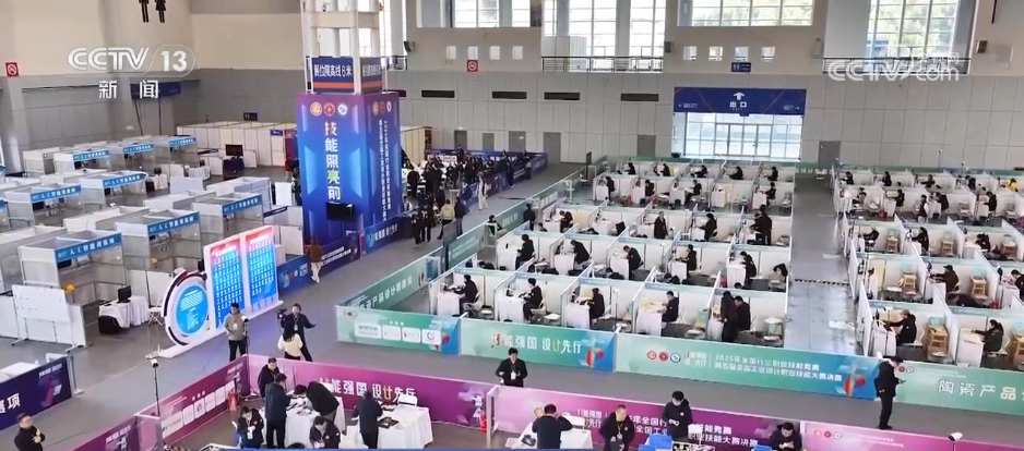 在陶瓷产品设计师赛区,记者看到,选手们一大早就投入到紧张的角逐中,这场比赛会持续两天,他们需要完成从创意到绘图再到亲手做成品的整个流程。和这个传统赛项相比,旁边的制图员赛区则充满了科技感与新鲜感,记者注意到,AI工具的加入让传统制图工作焕发新活力。