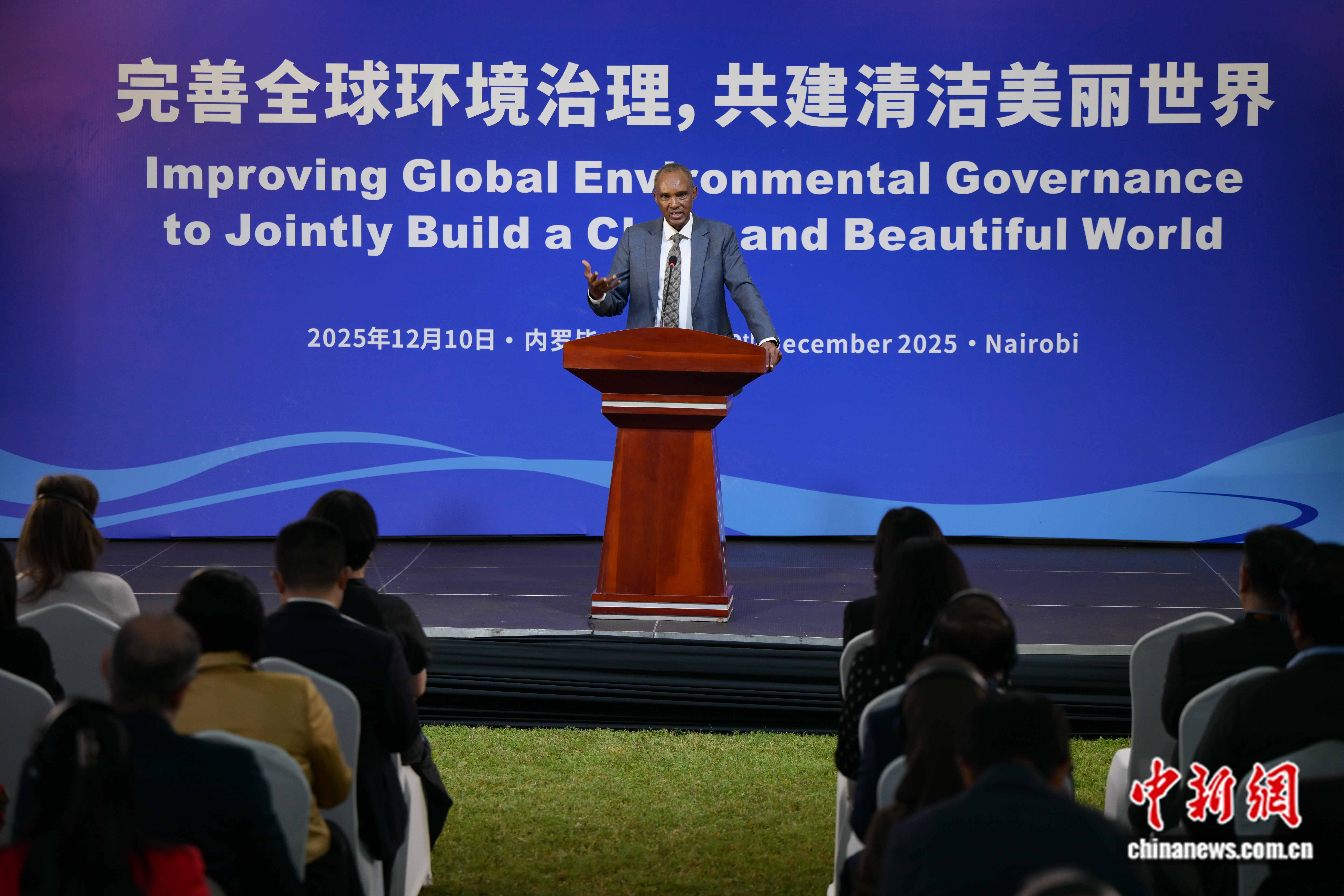 中新网12月11日电 第七届联合国环境大会期间,由生态环境部指导,中国常驻联合国环境署代表处、习近平生态文明思想研究中心、新华社非洲总分社主办的“完善全球环境治理,共建清洁美丽世界”主题边会,于当地时间12月10日在内罗毕举行。生态环境部党组成员、副部长郭芳,中国驻肯尼亚大使郭海燕出席并致辞,联合国环境署执行主任英格·安德森出席活动。