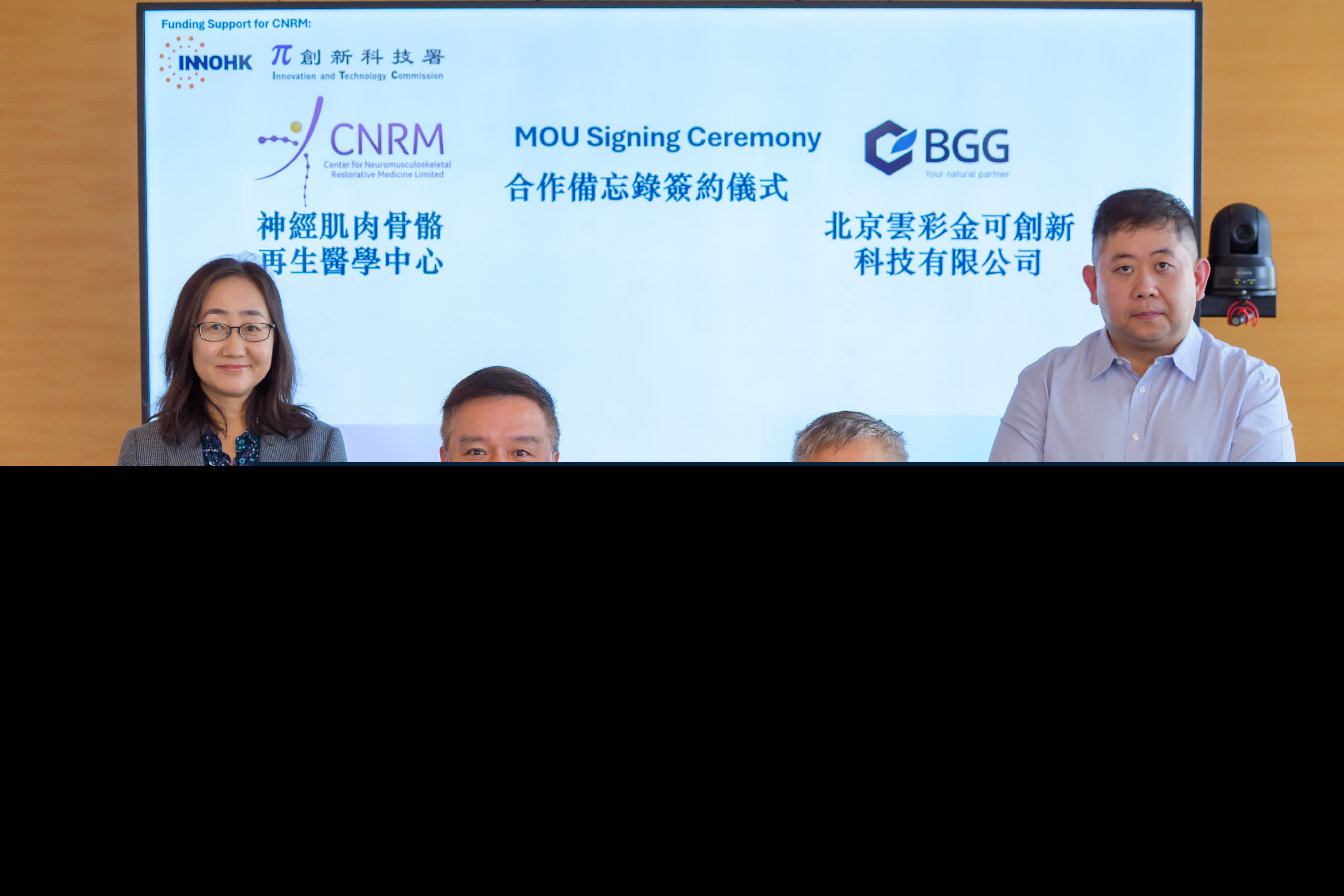 香港文匯報訊(記者 莫楠)香港中文大學InnoHK神經肌肉骨骼再生醫學中心(CNRM)今日(12日)與全球知名天然健康成分企業北京金可集團(BGG)簽署合作備忘錄,確立為期三年的合作關係。雙方將整合先進生物醫學驗證技術,應用於營養補充劑、藥品及個人護理產品開發,標誌着InnoHK創新香港研發平台在學術研究轉化與商業化進程中邁出重要一步。與此同時,BGG亦與CNRM的衍生公司Senelixir Biotech Ltd簽訂合作研究協議,雙方將共同開發針對全球老年化關鍵挑戰——肌肉減少症的補充劑,邁出實質性合作的第一步。