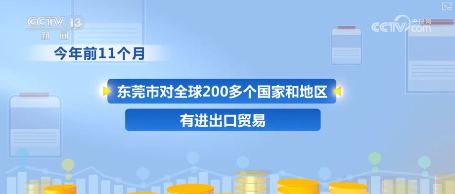 2025年前11个月,东莞市对全球200多个国家和地区有进出口贸易。其中,对东盟进出口增长超三成。