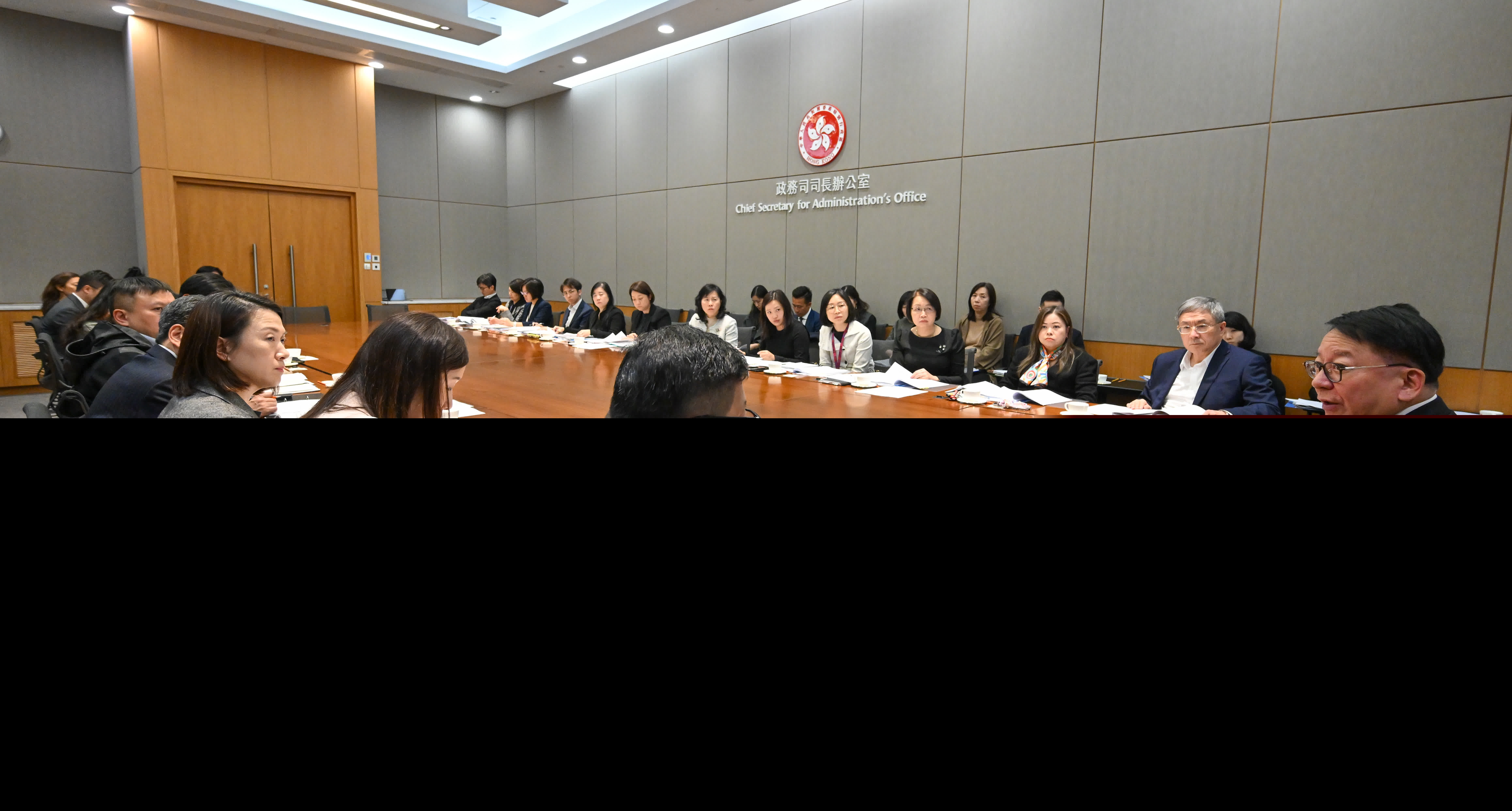 政務司司長陳國基今日(12月17日)主持節慶安排跨部門工作小組會議。政府新聞處圖片