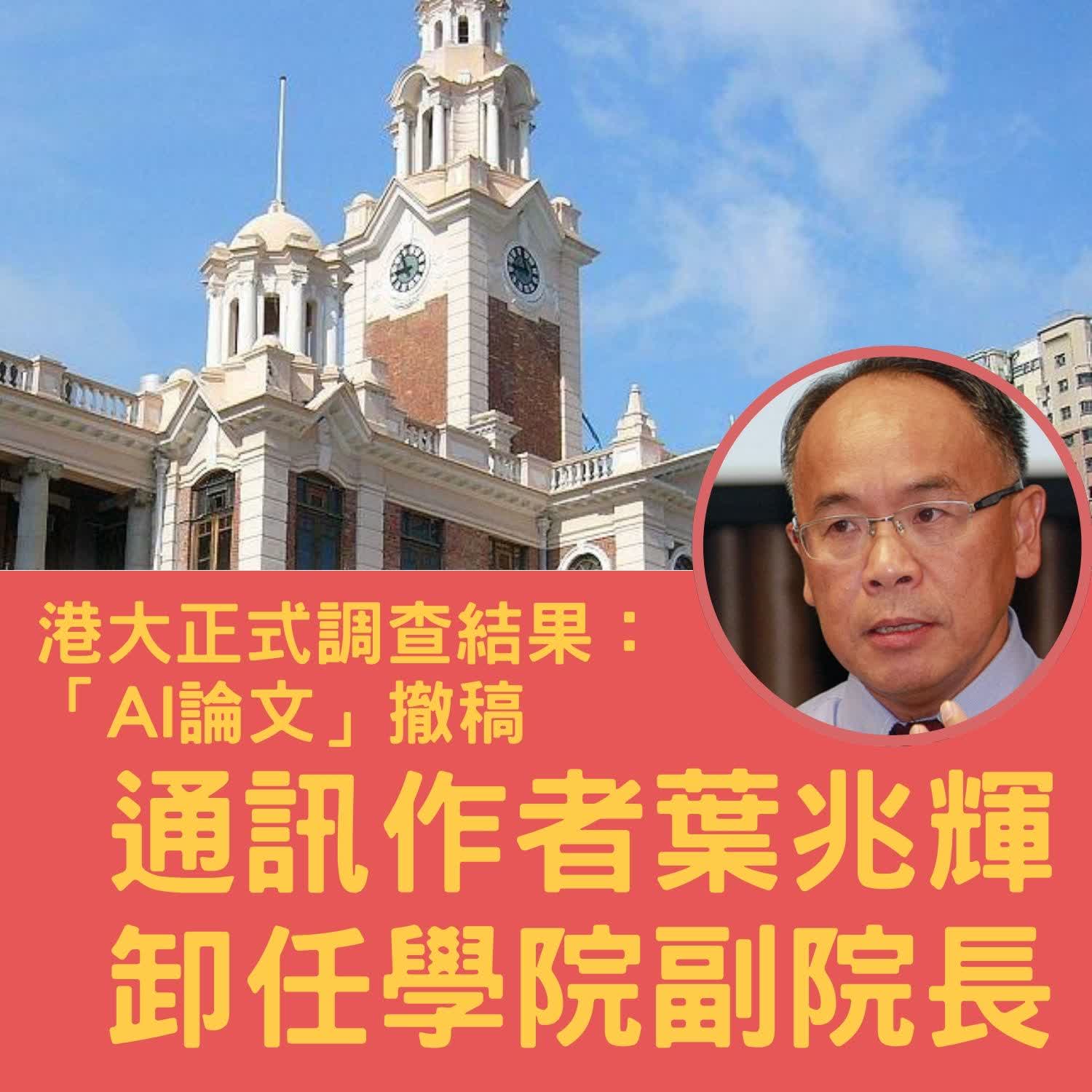 香港大學今日宣布完成調查,確認論文部分引文為人工智能(AI)生成的虛構文獻,而參與研究的博士生未作申明。港大已採取紀律處分及相應措施,包括葉兆輝已卸任學院副院長及研究事務相關職務,以及該作者已向相關期刊申請撤稿,涉事博士生亦須按大學既定紀律程序處理。