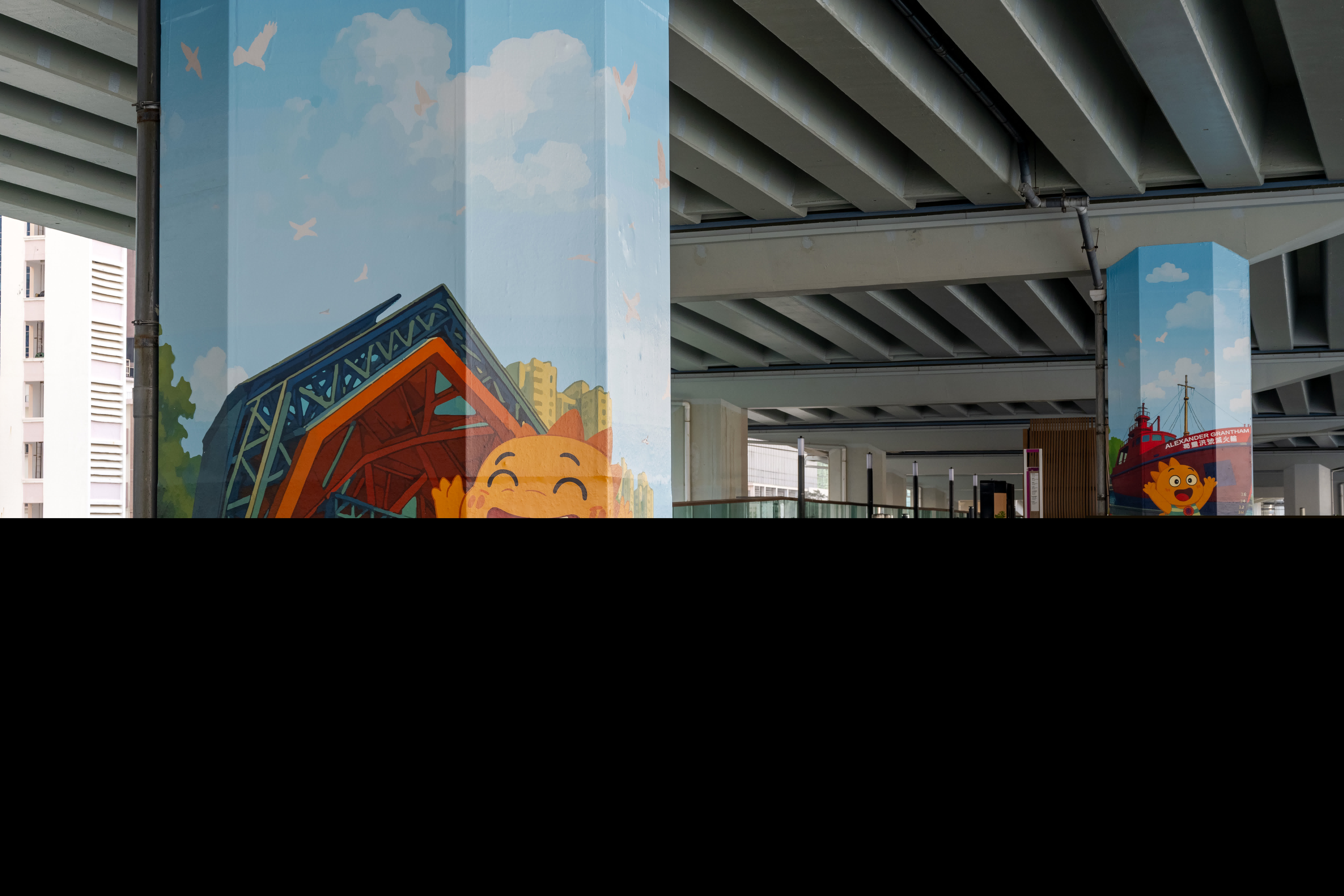 近電照街的寵物友善區,讓巿民與牽繩寵物放鬆放電,再一起踏上板道賞維港,該處亦設有明年首季開放的小食亭和可提供餐飲服務的多用途室;數個多功能開放式空間,可供申請舉辦展覽、藝術和社區活動。多位本地藝術家亦為空間增添生氣,除設置藝術裝置外,亦在橋墩展示海洋生物和東區吉祥物「東東」遊覽東區人氣景點的圖案;及最東端近鰂魚涌入口設有小型廣場,而相連的海裕街行人路已經擴闊,提高暢達度。