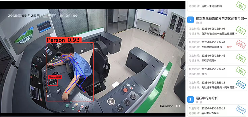 一是职业技能智能化评价。依据《铁路技术管理规程》等行业标准,将速度控制、停车对标等作业要求转化为数据规则与算法模型,系统实时采集并自动比对学生操作数据,实现技能水平的智能评测;通过高清摄像头、智能手环等设备,无感化采集学生的操作动作、心率变异性等数据,并与模型实时比对,实现操作行为的智能评价。二是职业素养智能化评价。系统通过自动采集与人工申报两种途径,汇集学生过程行为数据及竞赛获奖等成果,统一映射至“信仰、意志、纪律、作风、本领”五个素养维度,实现职业素养的智能评价。