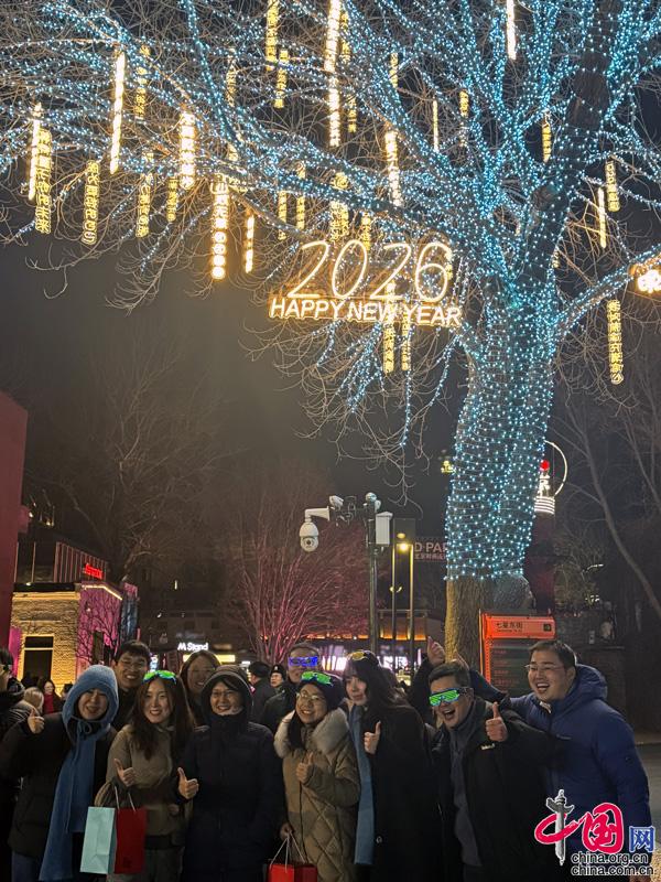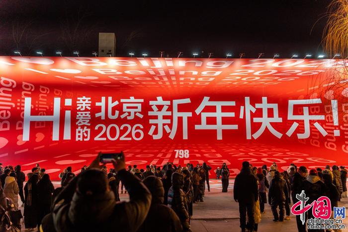 中国网12月31日讯(记者苏向东)12月31日晚,随着夜色降临,52万平方米的北京798艺术区已是火树银花、音乐沸腾、人头攒动,欢乐的人群身着盛装开始迎接新年倒计时!在电子广场,1400平方米的“亲爱的北京,2026新年快乐”主题墙前,市民游客纷纷拿起手机打卡留念。