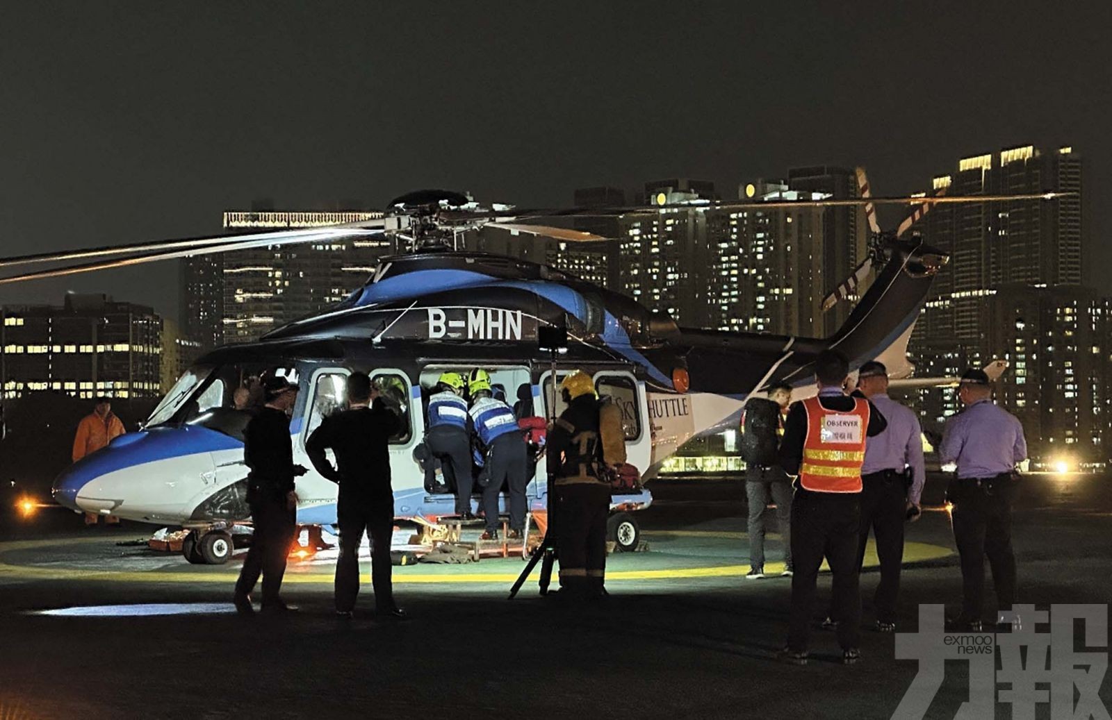 演習於昨晚8時開始,歷時約1小時,共有約100名人員參與,動用消防救援車及救護車共7輛,整體過程順暢,充分展現了跨部門協作的效率。演習由港澳直升機服務營運商亞太航空有限公司統籌策劃,參與單位包括海關、治安警察局、消防局、衛生局、海事及水務局和民航局。