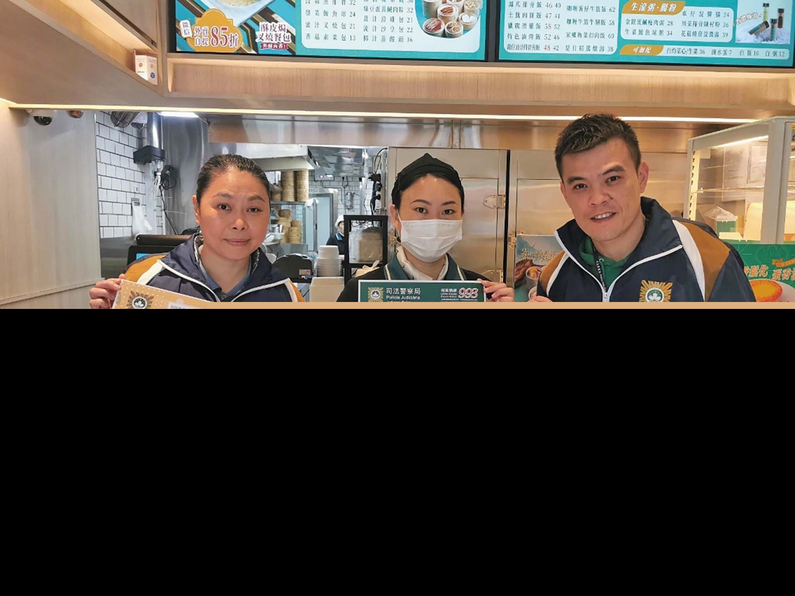 提醒店員警惕電訊網絡詐騙。(司警局圖片)