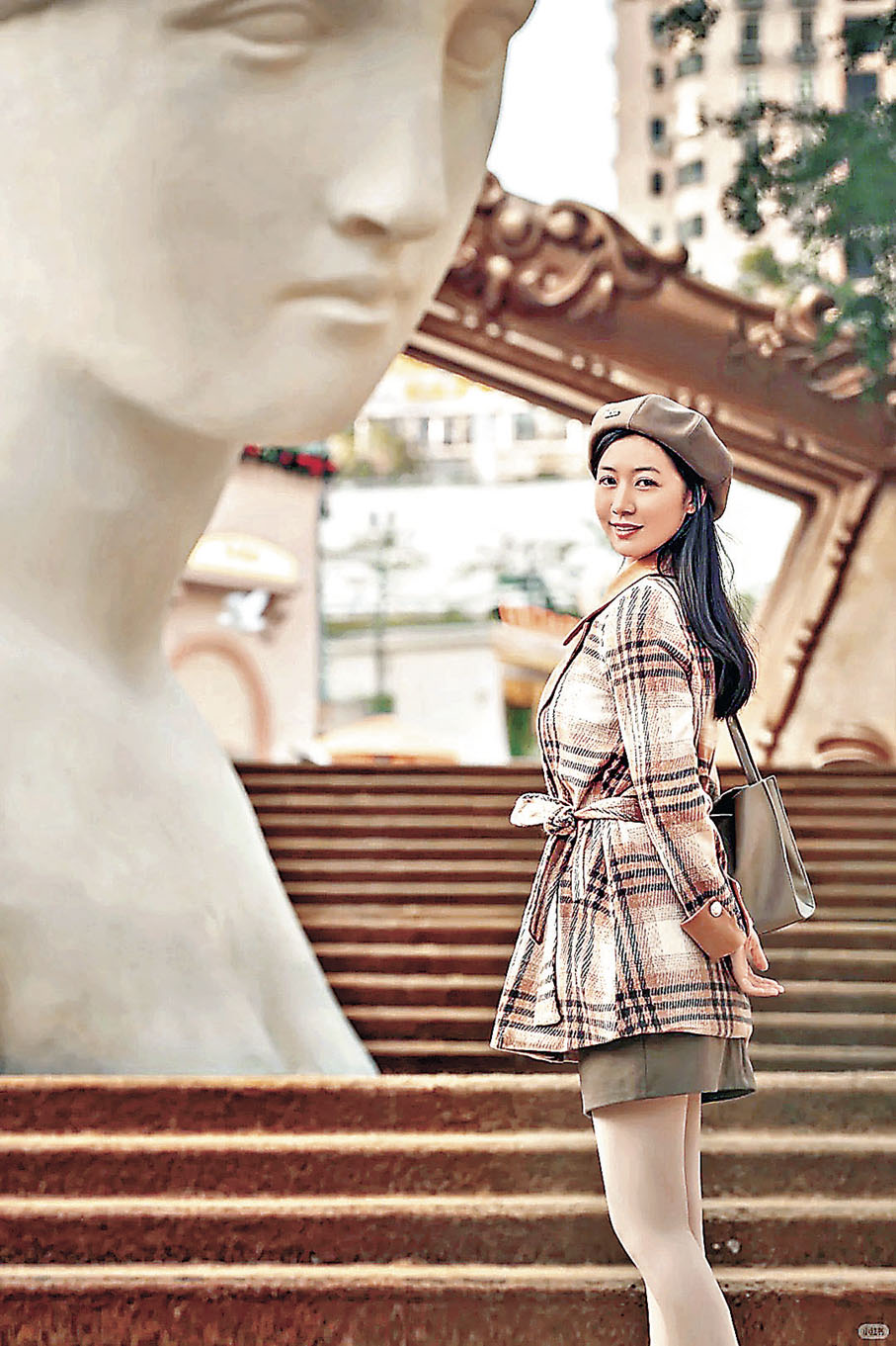街區的歐式風格建築錯落有致,不管是仰拍、俯拍還是隨手拍,每一幀照片都令人驚艷,各位港客可以在一個風和日麗的日子前來,最佳時間是下午3時至5時,與伴侶、家人或閨蜜來到這裏,共赴一場浪漫盛宴。街區樓梯的超巨型石膏像、巨型畫框可謂標誌性打卡位之一,大家到達商場可先到樓梯位,文藝復興風格石膏像在階梯兩邊,旁邊亦有鑲住聖誕花環的巨型畫框,大家坐在石級上,與石膏像合影,背後畫框框住天空,陽光普照下微微柔光,下午更不時有白鴿飛來圍住團團轉,餵鴿子同時打卡,一次過滿足兩個願望。
