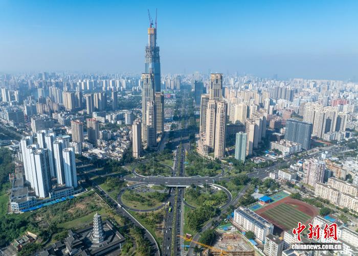 2025年12月17日,航拍海口市国兴大道CBD。中新网记者 骆云飞 摄