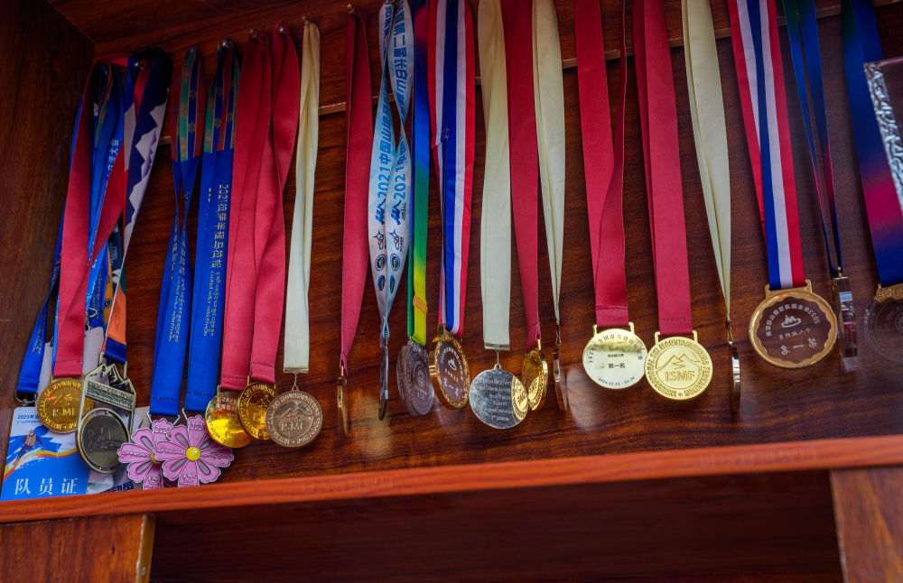 次旦玉珍参赛获得的奖牌被家人挂在家中展示(2026年2月7日摄)。新华社记者 丁增尼达 摄