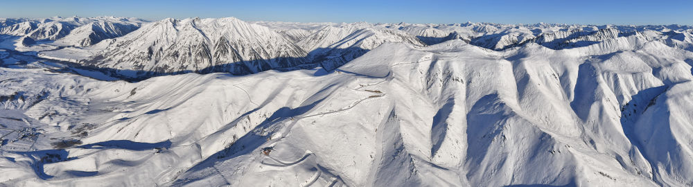 新疆阿勒泰可可托海国际滑雪度假区(2026年1月17日摄,无人机照片)。新华社记者 胡虎虎 摄