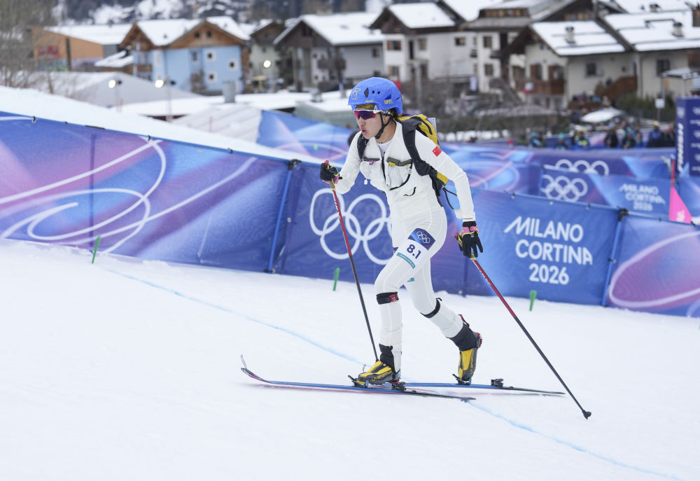 2026年2月21日,次旦玉珍在米兰-科尔蒂纳冬奥会滑雪登山混合接力比赛中。新华社记者 胡虎虎 摄