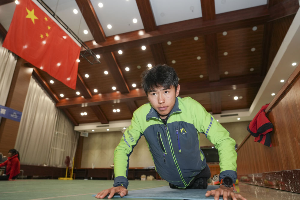 2026年2月19日,次旦玉珍在米兰-科尔蒂纳冬奥会滑雪登山女子个人短距离比赛前热身。新华社记者 颜麟蕴 摄