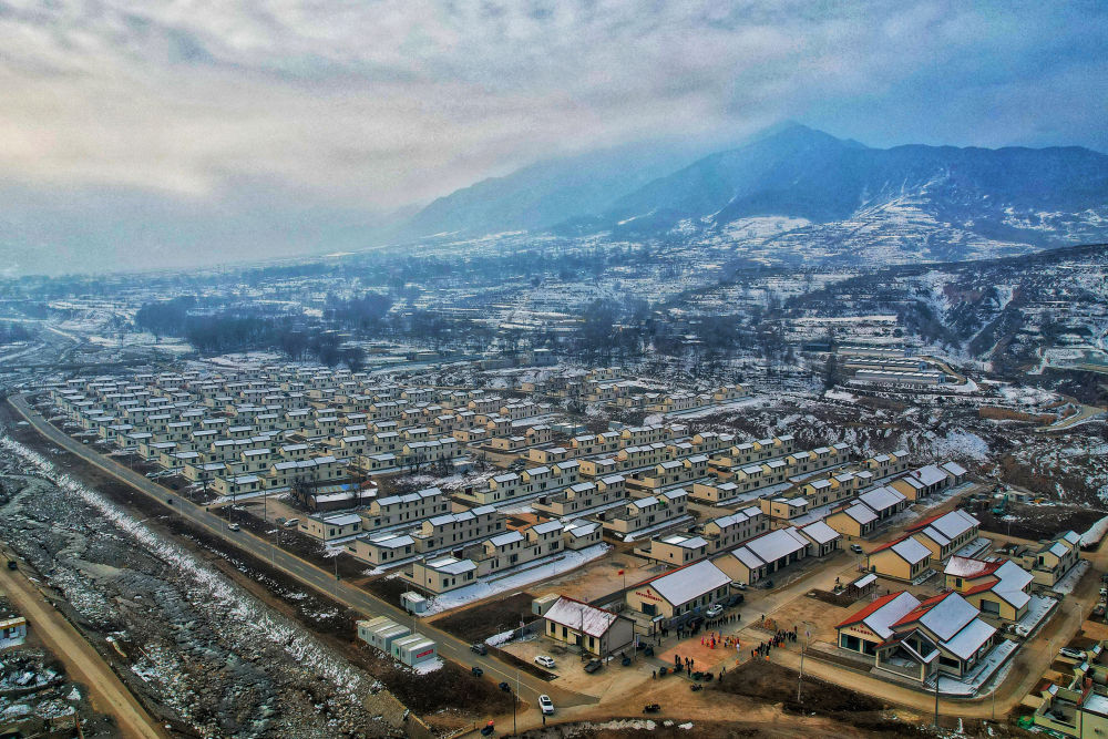 这是甘肃省临夏回族自治州积石山县刘集乡刘集村集中安置点(2024年12月6日摄,无人机照片)。 新华社发(张维吉 摄)