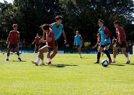 2月26日,中国女足在澳大利亚新南威尔士州的纽卡斯尔集训,备战女足亚洲杯。新华社记者 马平 摄