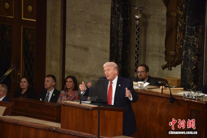当地时间2月24日晚,美国总统特朗普在国会参众两院联席会议上发表国情咨文讲话,聚焦经济、移民等议题。这是特朗普在本总统任期内首次发表国情咨文。 记者 沙晗汀 摄