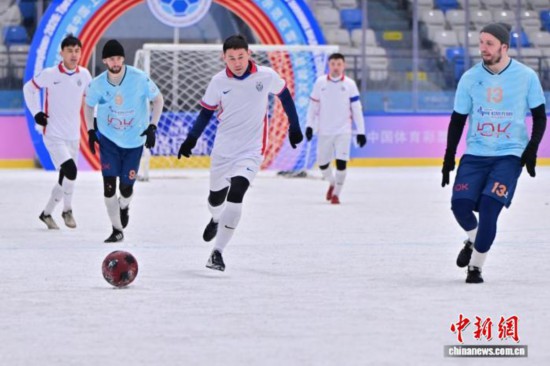 2026第三届中国—上海合作组织冰雪体育示范区雪地足球比赛决赛9日在哈尔滨冰球馆举行。王立刚 摄