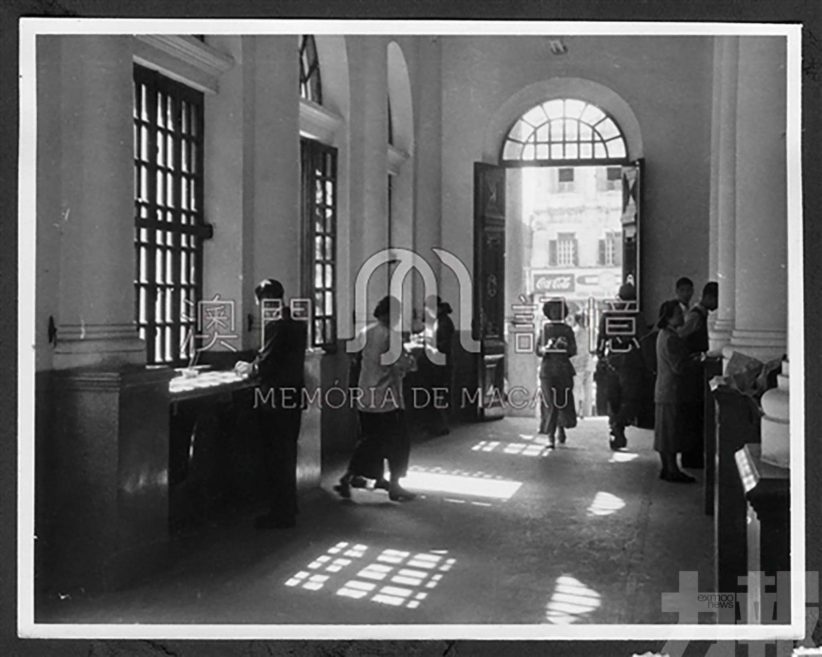 圖為1950年代郵政局總部大樓內部景觀。 (澳門特區政府郵電局提供,摘自 「澳門記憶」 文史網)