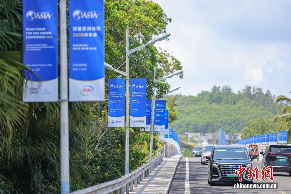 3月17日,博鳌亚洲论坛2026年年会各项筹备工作正有序推进,海南博鳌街头的盛会氛围日渐浓厚。以“塑造共同未来:新形势、新机遇、新合作”为主题的博鳌亚洲论坛2026年年会将于3月24日至27日在海南博鳌召开。图为博鳌培兰桥道路两侧,博鳌亚洲论坛2026年年会道旗整齐排列。中新社记者 骆云飞 摄