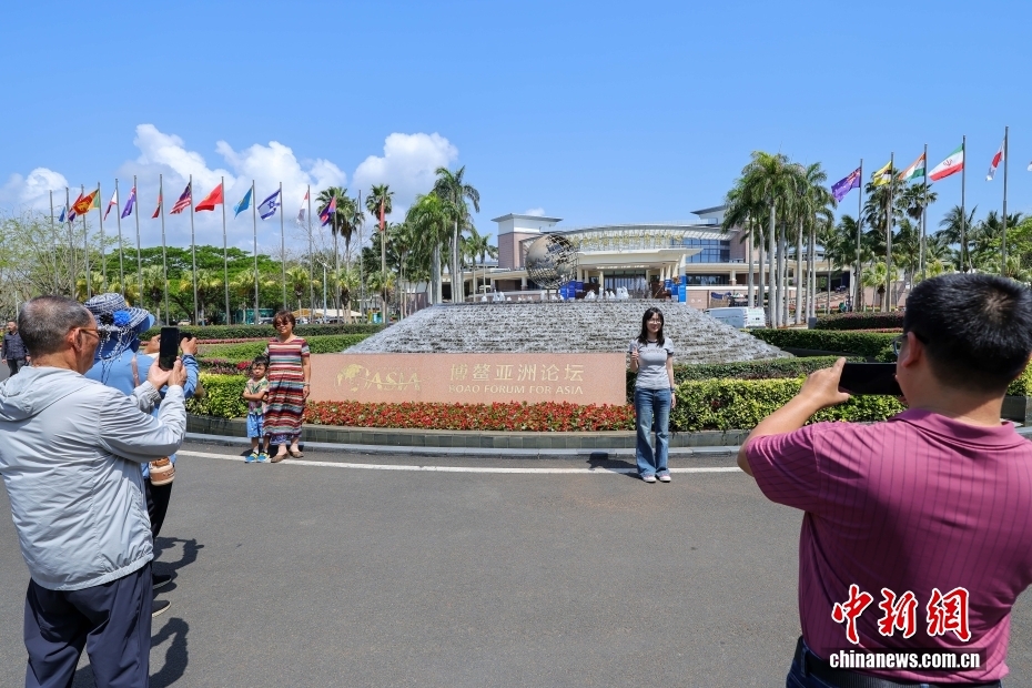 3月17日,博鳌亚洲论坛2026年年会各项筹备工作正有序推进,海南博鳌街头的盛会氛围日渐浓厚。以“塑造共同未来:新形势、新机遇、新合作”为主题的博鳌亚洲论坛2026年年会将于3月24日至27日在海南博鳌召开。图为游客在博鳌亚洲论坛永久会址前打卡拍照。中新社记者 骆云飞 摄