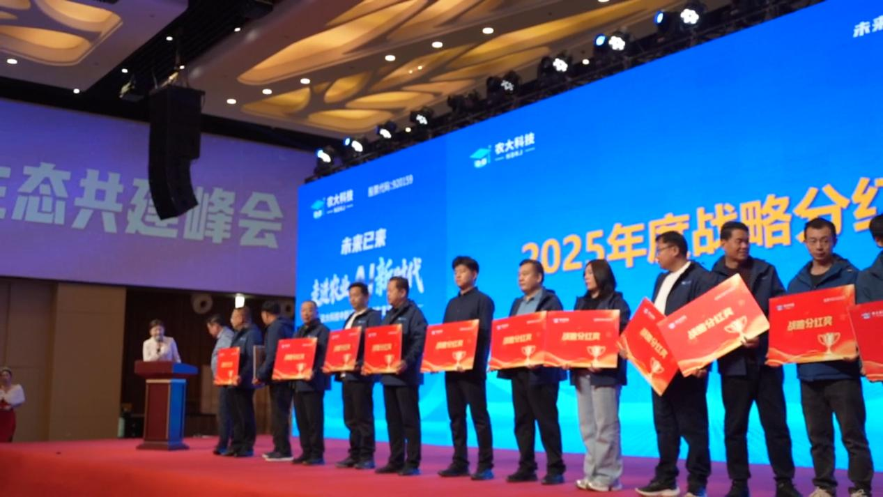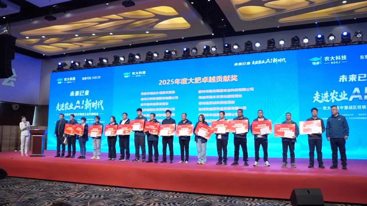 会议期间,农大科技对优秀经销商进行了表彰。期间,获奖代表河南省滑县半坡店乡淑霞农资部负责人刘赶想分享了农资销售经验,肯定了农大科技的支持与应变能力。此外,会议举行了首批 “农大科技综合服务站” 授牌仪式,标志着厂商合作从产品层面升级至服务生态共建层面。