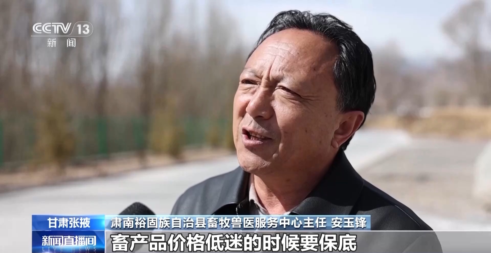 肃南裕固族自治县畜牧兽医服务中心主任 安玉锋:畜产品价格低迷的时候要保底,畜产品价格上扬的时候要按市场价格收购,这样就保证了产业能够健康发展,同时确保了老百姓养牛羊的积极性。