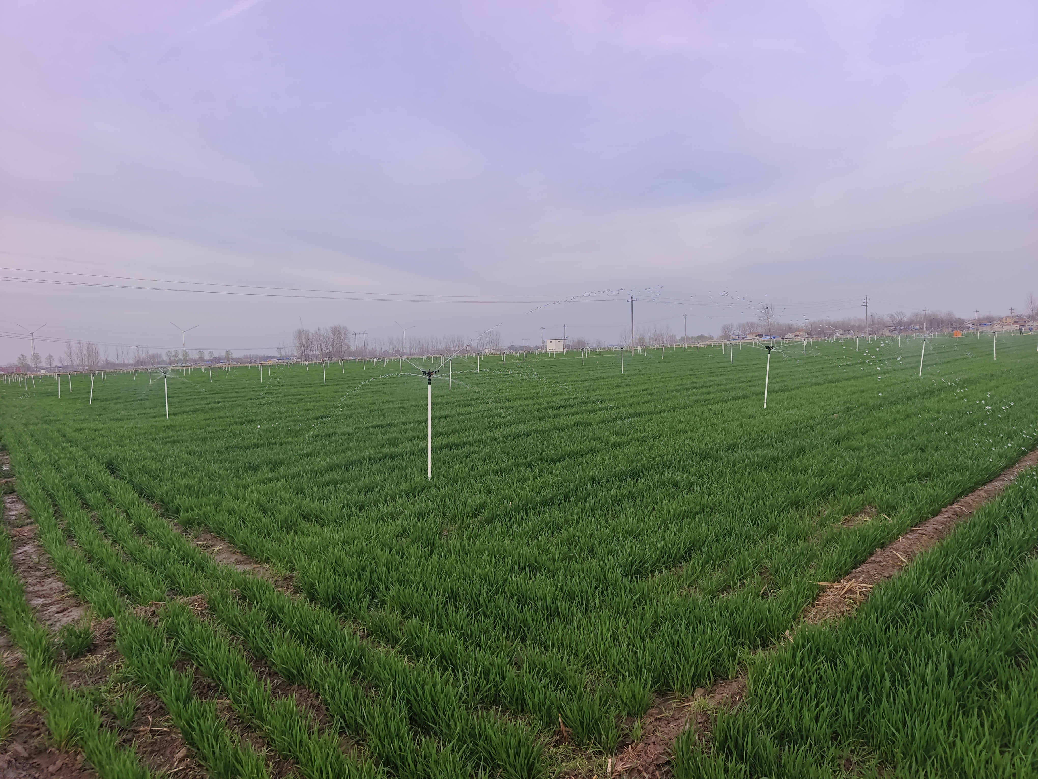 滑县留固镇西冢头村农户给小麦进行灌溉。