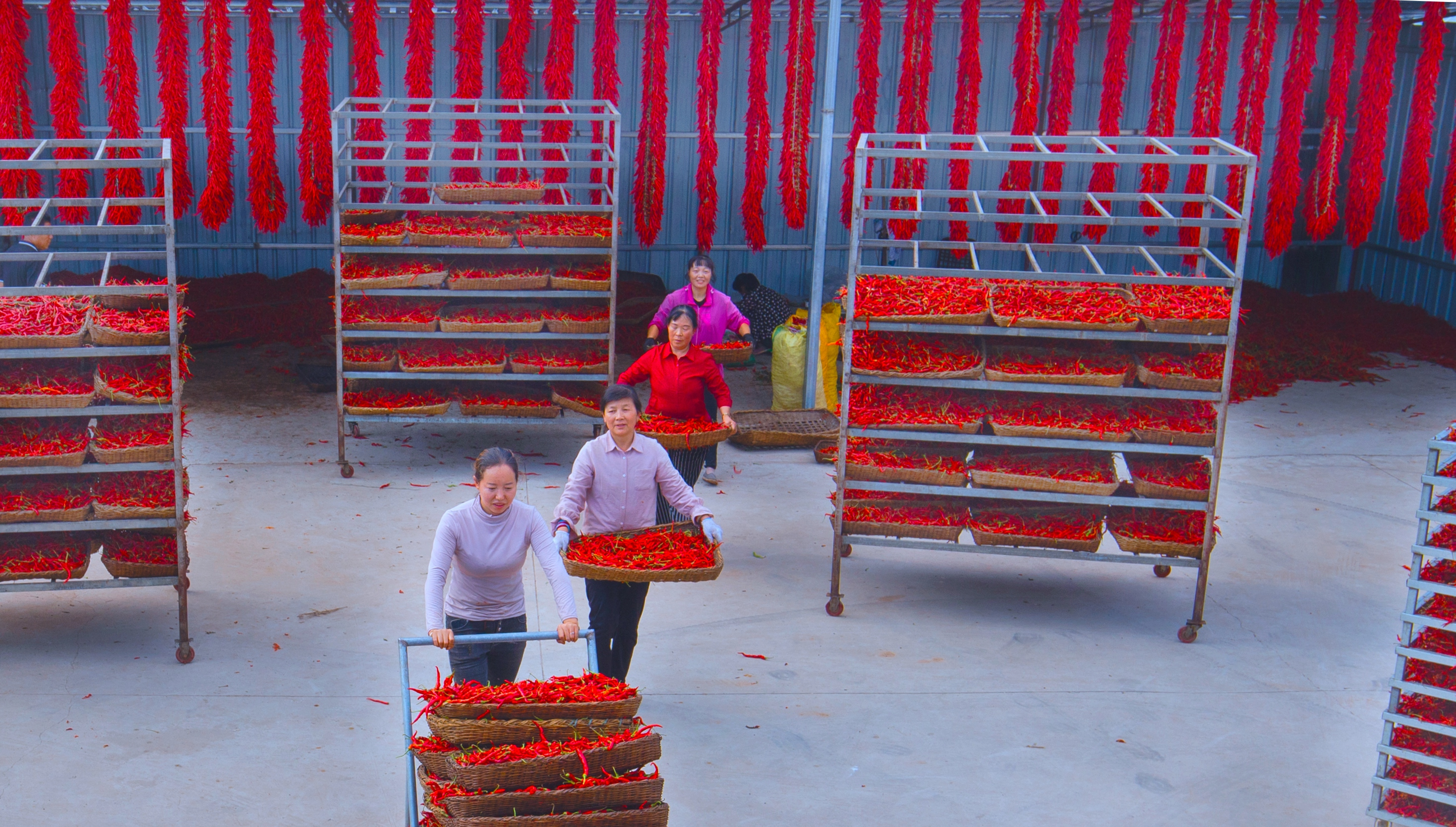 一座座现代化设施大棚紧密相连,一朵朵食用菌竞相绽放,一串串辣椒挂满檐头……在陇县的乡村大地上,特色产业“生金”,增收致富“有道”。