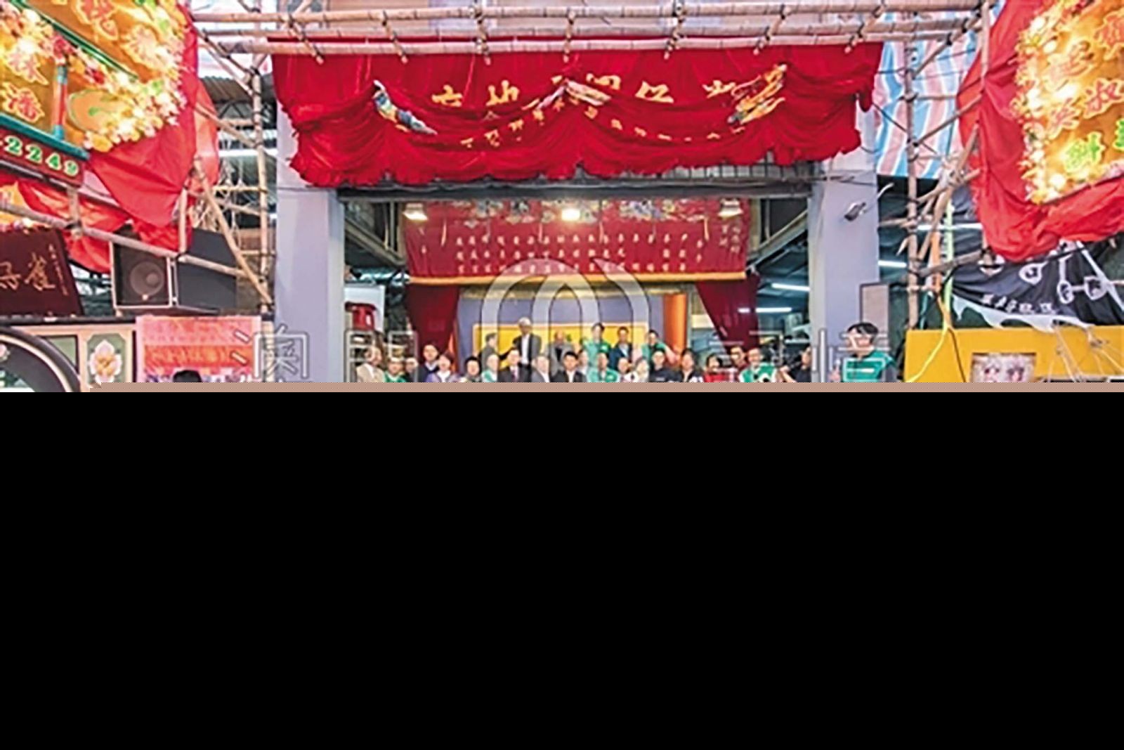雀仔園福德祠土地誕嘉賓為醒獅點晴。(澳門雀仔園福德祠土地廟值理會提供,摘自 「澳門記憶」 文史網